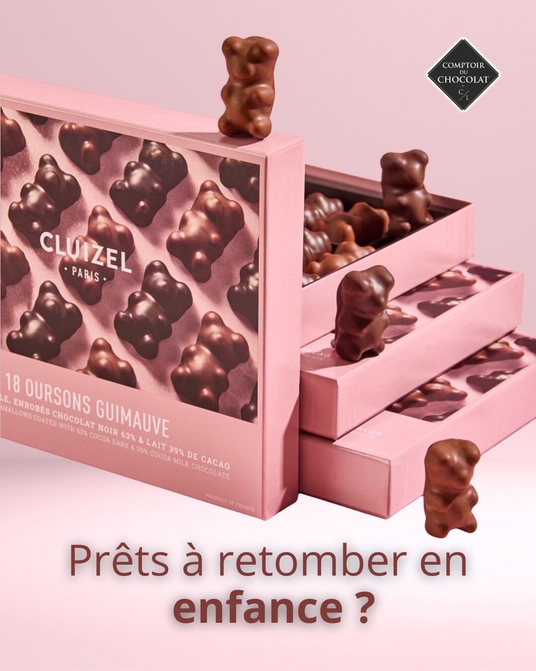 Chocolatier Montpellier : Coffret d’Oursons Guimauve CLUIZEL en Chocolat Noir et Lait