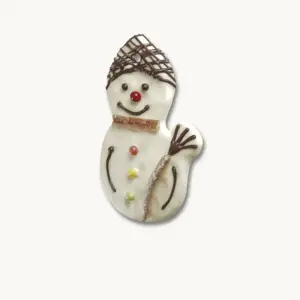 Avec son air joyeux et son allure chaleureuse, ce bonhomme de neige s’intègre aussi bien en centre de table qu’au pied du sapin… avant de devenir un pur moment de gourmandise.