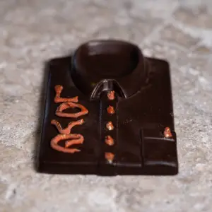 La chemise en chocolat LOVE est une création originale du Comptoir du Chocolat, pensée pour allier gourmandise et message délicat. Façonnée en chocolat, elle se distingue par l’inscription “LOVE” directement intégrée au design, apportant une touche à la fois tendre et élégante.