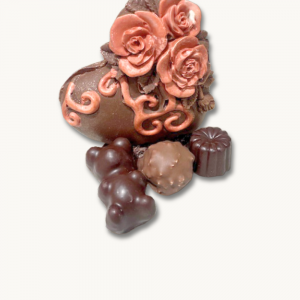 Succombez à l’élégance et à la gourmandise avec le Cœur Baroque , un écrin raffiné qui célèbre l’art du chocolat. Disponible en chocolat au lait fondant ou en chocolat noir intense 72%, ce cœur délicat renferme un assortiment de douceurs exquises :